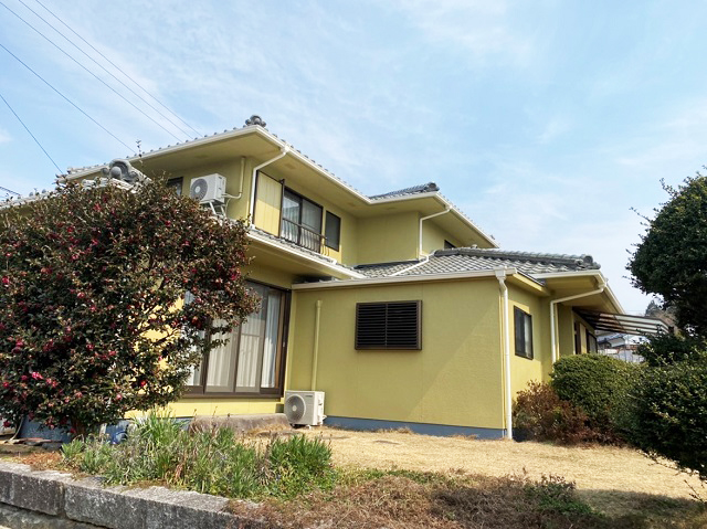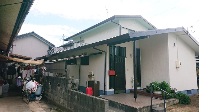 築13年以上で、吹付の外壁、屋根が「アスファルトシングル」と呼ばれる砂を含んだ屋根材を使っていました。